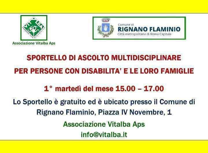 Ogni primo martedì del mese dalle ore 15:00 alle ore 17:00 presso la sede del Comune di Rignano Flaminio in Piazza IV Novembre, n. 1