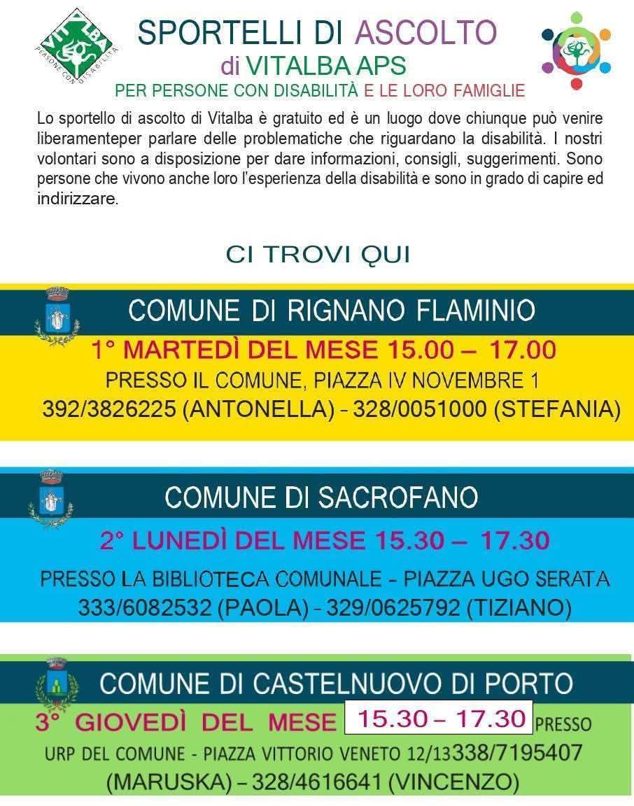 Ogni primo martedì del mese dalle ore 15:00 alle ore 17:00 presso la sede del Comune di Rignano Flaminio in Piazza IV Novembre, n. 1
