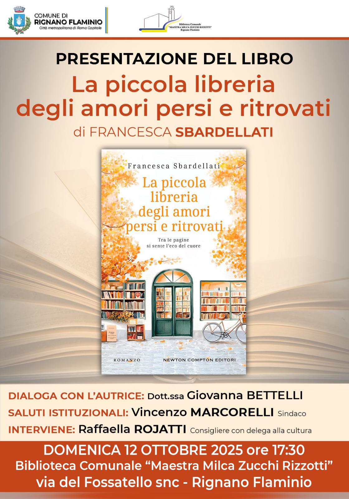 Presentazione del libro "La piccola libreria degli amori persi e ritrovati" di Francesca Sbardellati. Dialoga con l’autrice la dott.ssa Giovanna Bertelli.