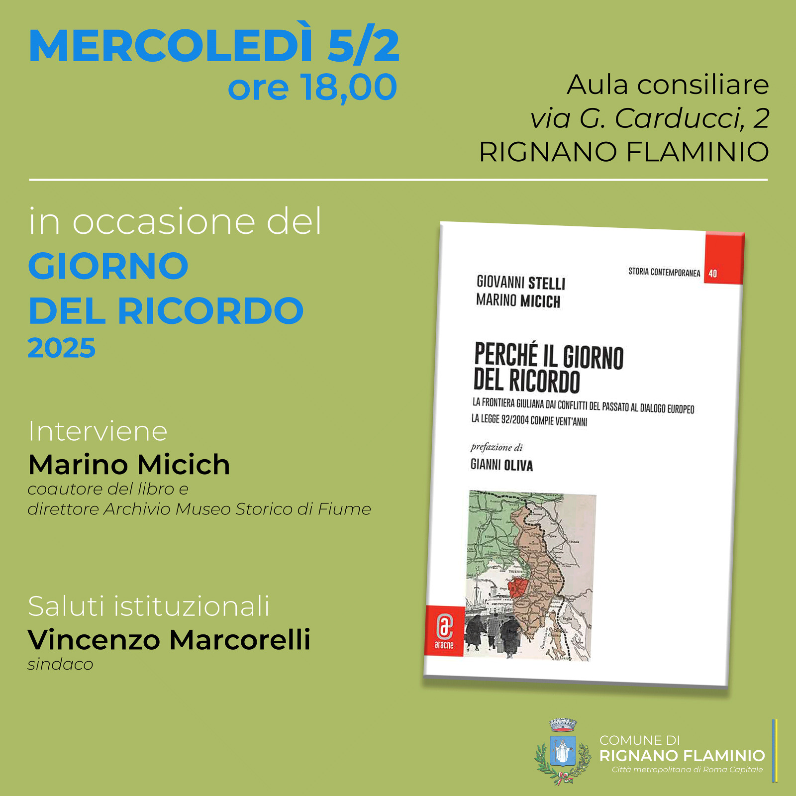 Come ogni anno celebriamo il Giorno del Ricordo con un incontro sul tema, rivolto alle scuole e a tutti i cittadini. Quest'anno.interviene Marino Micich, co-autore del libro "Perché il giorno del Ricordo" e direttore del Museo Archivio storico di Fiume.